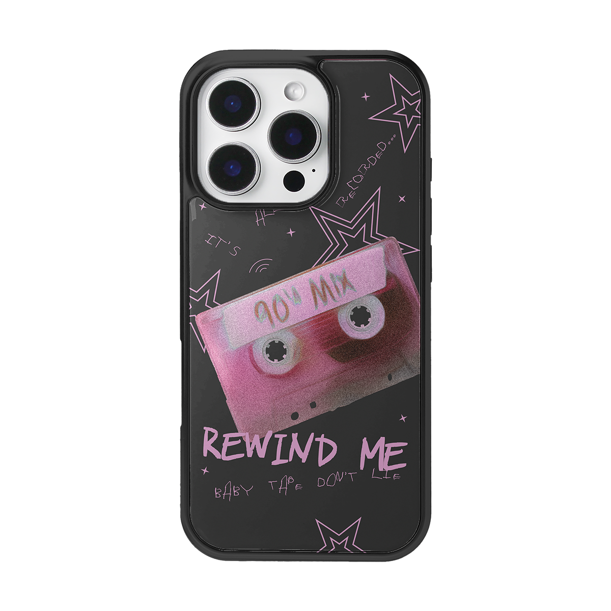 Handwritten doodles, bold stars, and a pink cassette make this case scream nostalgia.